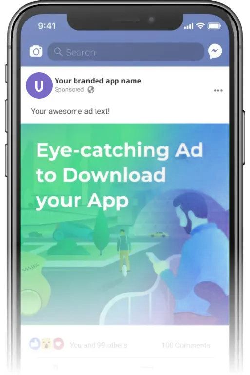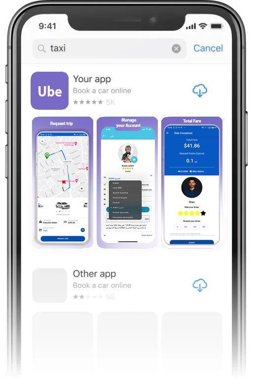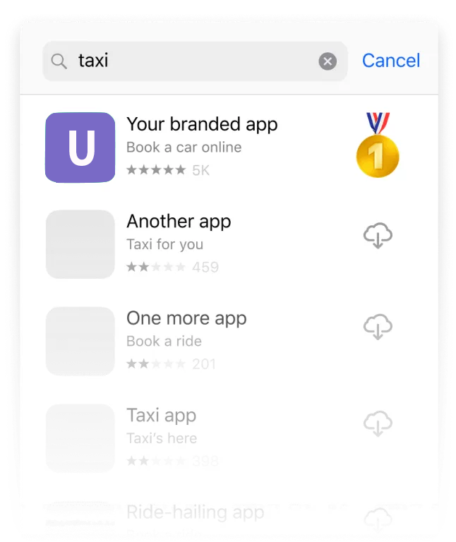 Get installs from people that are searching for taxi services in the App Store and more likely will convert into your riders! Your ad will look just like your app preview on the top of the App Store search results
